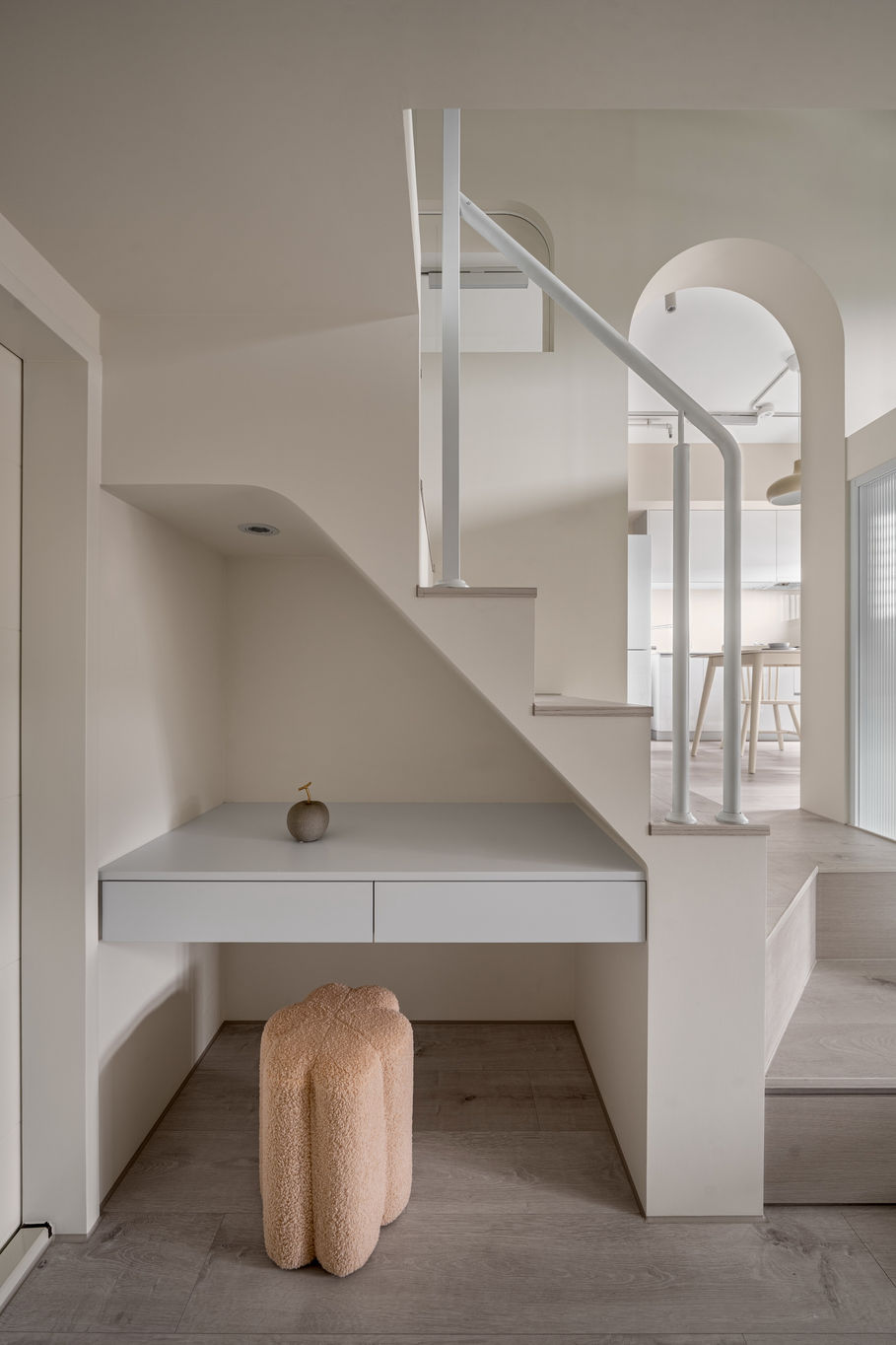 柔和的拱門劃開空間的節奏,讓生活的路徑被光包裹,時間在每一個轉角中緩慢。